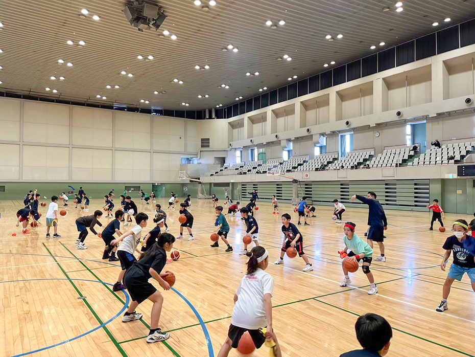 バスケットでは、ドリブルを前につくだけではなく後ろに向かってついたり、横へ向かってついたり様々な方向に向かって動きながらドリブルして相手をかわしたり、ボールを守ったりすることが大切です。